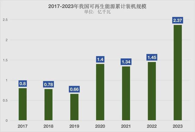 截至2023年底,我国风电、太阳能发电总装机量超过10亿千万时。这也意味着,我国大概率将大幅提前实现“到2030年风电、太阳能发电总装机容量达到12亿千瓦以上”目标。