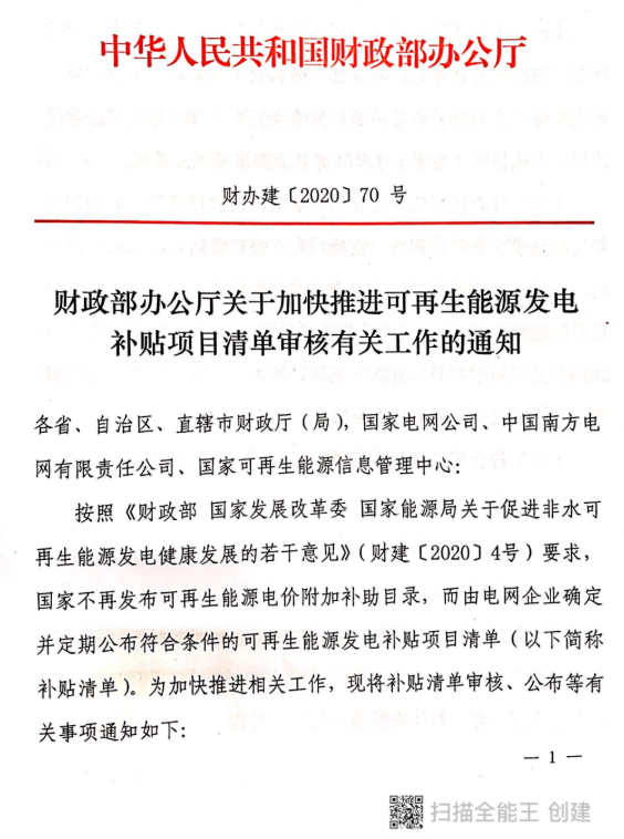 近日,财政部下发了《关于加快推进可再生能源发电项目补贴项目清单审核工作的通知》(财办建〔2020〕70号)。与之前下发的6号文(《关于开展可再生能源发电补贴项目清单有关工作的通知》)相比,最大的区别在于,2017年7月底之后并网的非竞价光伏项目也可以进入补贴清单,按比例获取财政补贴。索比光伏网测算得出,这部分项目规模超过50GW,将给存量电站运营商带来重大利好,预计未来电站交易也将更加频繁。