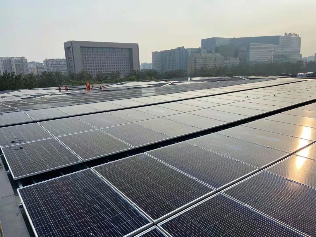 北京冬奥组委首钢办公区的几座办公楼楼顶上,也布满了光伏发电装置。由国家电网北京石景山供电公司建设的光伏发电系统已于2018年9月起并网使用。