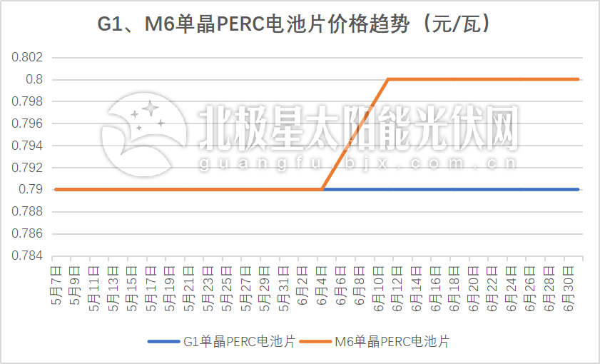 掣肘于产能因素,产线兼容度最高的166组件成为当下设计首选。据一位接近主流设计院的业内人士透露,下半年相当一部分光伏电站设计是基于450W组件设计的。市场价格变动则是产品需求的最佳佐证,从6月起,同G1(158.75mm)电池价格同步多时的M6(166mm)电池开始更换轨道价格起涨。