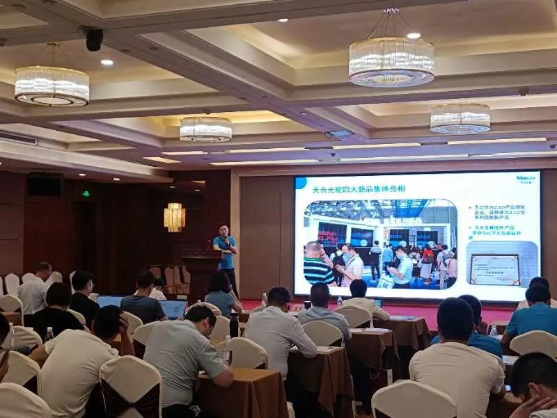 有观众指出,过长、过宽的组件都可能增加安装成本,建议企业推出基于大硅片的小版型组件。对此,唐正恺表示,天合已经在策划4*10组件版型,功率约为400W,比尺寸接近的166组件高30W左右。从现场反应看,这一版型受到经销商高度关注和广泛好评,第一时间收获了大量订单。