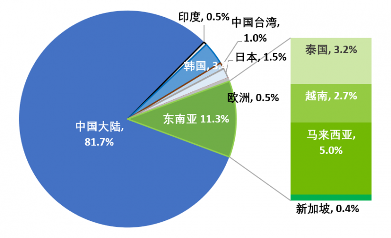 2020年9月份,主要受包括硅片、电池和组件端在内的各企业发布扩产计划影响,中国大陆市场的太阳能电池片产能份继续增长,突破81%;