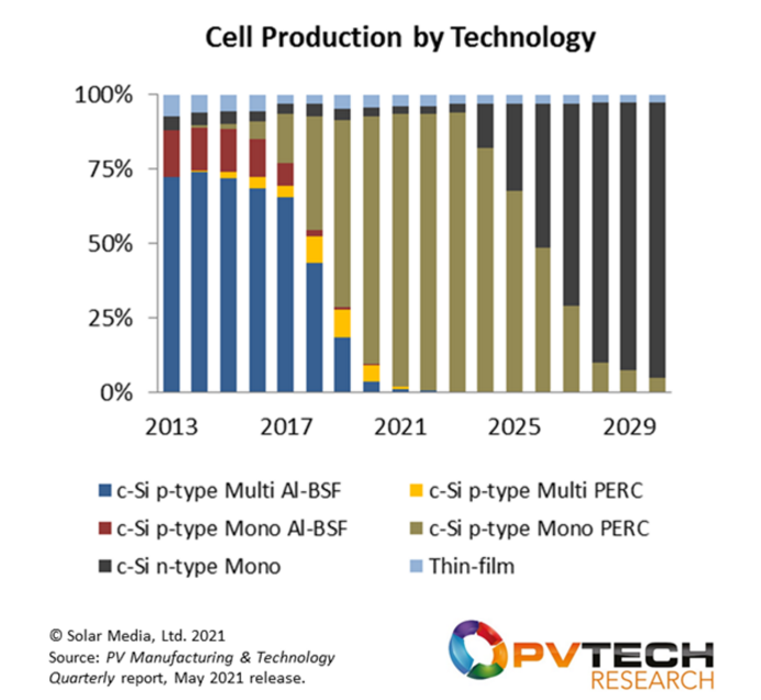 这些发现源自PV-Tech最新发布的《光伏制造与技术季报》(2021年5月),报告精准跟踪了电池生产商和n型架构,设置了3-5年后会出现的技术变革场景。