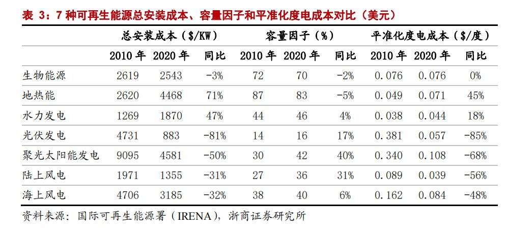 过去十年,太阳能成为发展速度最快的能源类型,不仅光伏组件总安装成本下降81%,而且平准化度电成本更是下降85%。