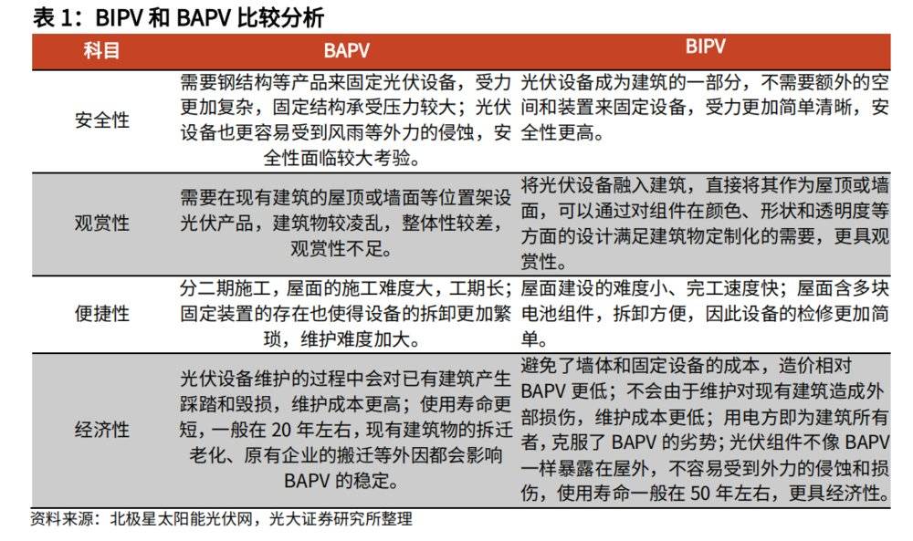 简单对比不难发现,BIPV不需要额外的固定装置,不仅更加美观而且也更加安全,同时BIPV融入建筑建设工期更短,所耗费的成本也更加可控,这也导致BIPV有望成为未来建筑光伏发展的主流。