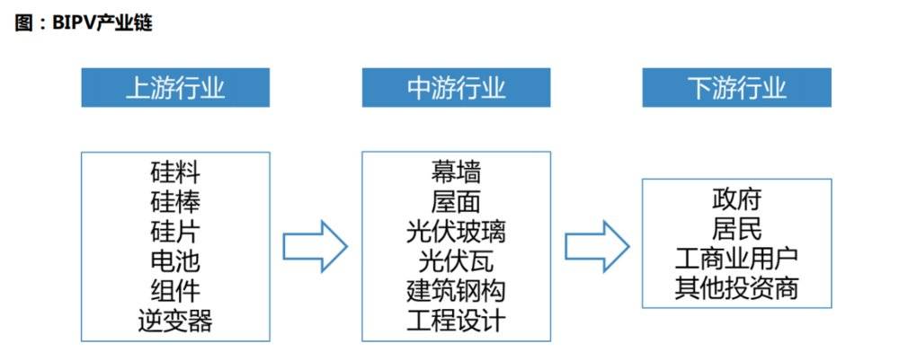 纵观整个BIPV产业链,上游为光伏组件产业,包括硅料、硅片、电池、组件、逆变器等;中游为工程设计及系统集成服务商,拥有建筑渠道和集成服务能力;下游则是具体应用场景,有助于环节工商户高电价的问题。