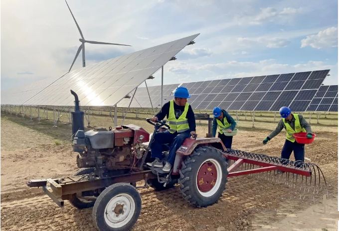 5月的光伏区一派繁忙的“种草”场面