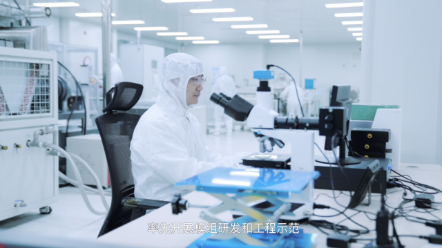 钙钛矿光伏电池技术产业化是业界关注的重点。华能清能院光伏研发团队经过连续多年研发攻关,取得系列研发成果,具备从实验室级别小面积电池到组件级别电池的全流程工艺开发能力,研发内容涵盖钙钛矿活性层及电子/空穴传输层材料设计研制、高性能电池工艺优化及高端装备开发、高效率低成本大面积钙钛矿电池制造和封装、叠层电池及组件设计和制备等,并完成百千瓦级大面积钙钛矿电池生产实验线和国内首批钙钛矿光伏示范系统建设。