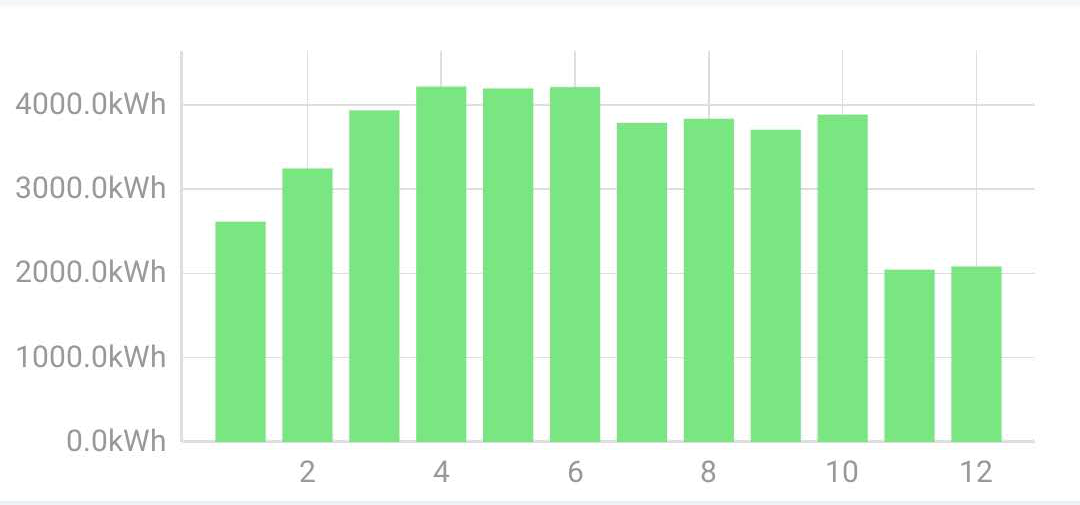 从理论上说,夏天光伏电站发电量应该是一年最高,但实际情况并非每一个电站都是如此。光伏发电由于安装条件不同,地点不同,每年的下雨量也不同,实际发电量差别较大。下面是两个相距不远两个电站项目,第一个是30kW项目,第二个是40kW项目,在同一年对比,实际发电量的对比。