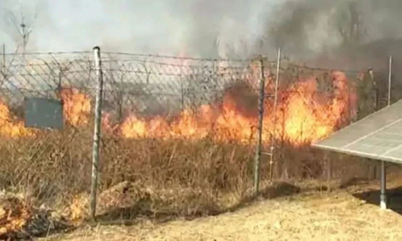 ↑↑2018年2月22日,某在建光伏项目存放光伏板的储料场起火,存放的光伏板全部烧毁,损失金额900万元。火灾原因为有人在料场西侧110米处用树枝、葵花杆焚烧枯树根引燃杂草,火势自西向东蔓延引发火灾。