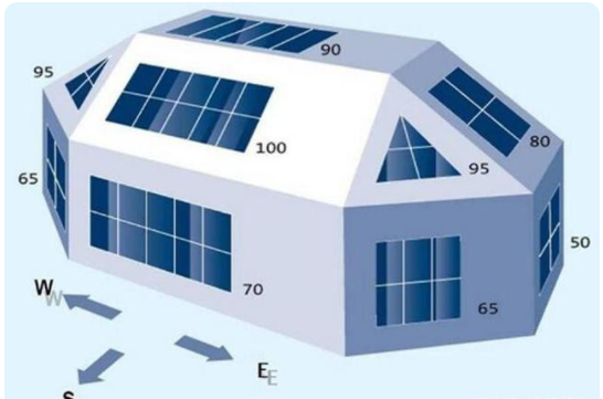 家庭光伏发电一般都是依托房屋建筑安装光伏板,虽然我国大部分房屋是南北朝向,但是东西朝向情况也不少,而且,随着建筑样式的多样化,多面别墅屋顶也非常普遍,家庭光伏发电如果侧重收益的话,不建议东、西、北面安装光伏板,正南或偏差15度左右方位安装光伏板为宜。