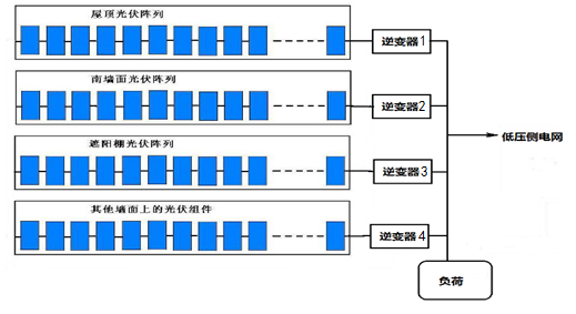 1、安装在不同朝向和倾角的建筑表面的光伏组件的发电情况有很大差异,因此,在组件的连接和匹配以及逆变器配套等方面都有不同的要求。建议不同建筑表面的光伏阵列宜分别安装使用独立的逆变器。依据当前建筑表面的光伏阵列容量,朝向,倾角差异选择合适的逆变器。避免不同朝向和屋顶的表面光伏阵列共用一台逆变器而导致相互干扰和影响。