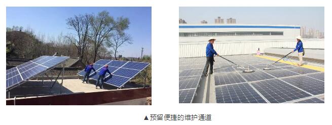 6、光伏阵列的布局要便于日后维护和清洁阵列表面,要预留便捷的维护通道。