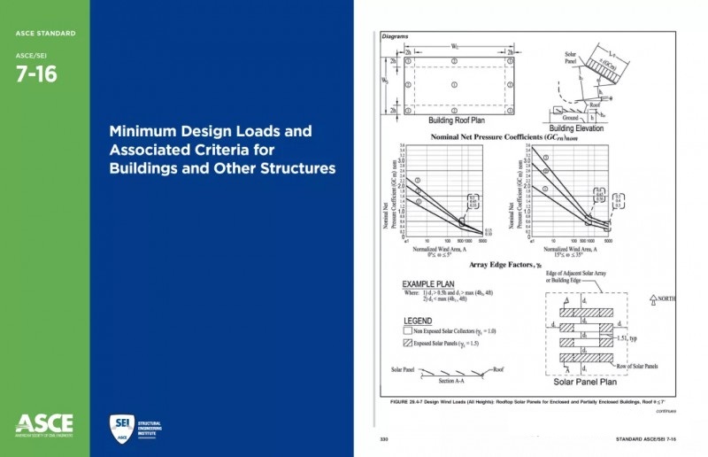2016年颁布的美国建筑荷载规范:ASCE 7-16,首次将平屋顶光伏支架的风荷载计算放入了ASCE标准中。
